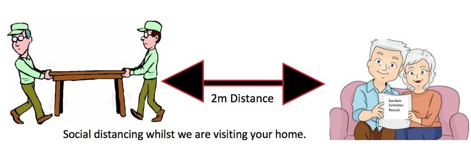 After ringing the doorbell, Barrdale shall maintain a safe distance (at least 2 metres) from any household occupants at all times. No delivery will physically be handed over to the customer, the householder should